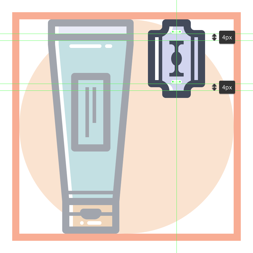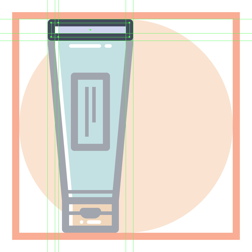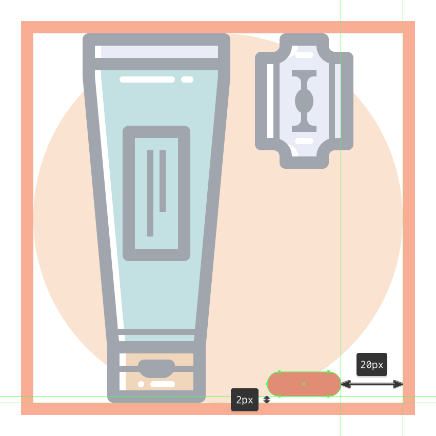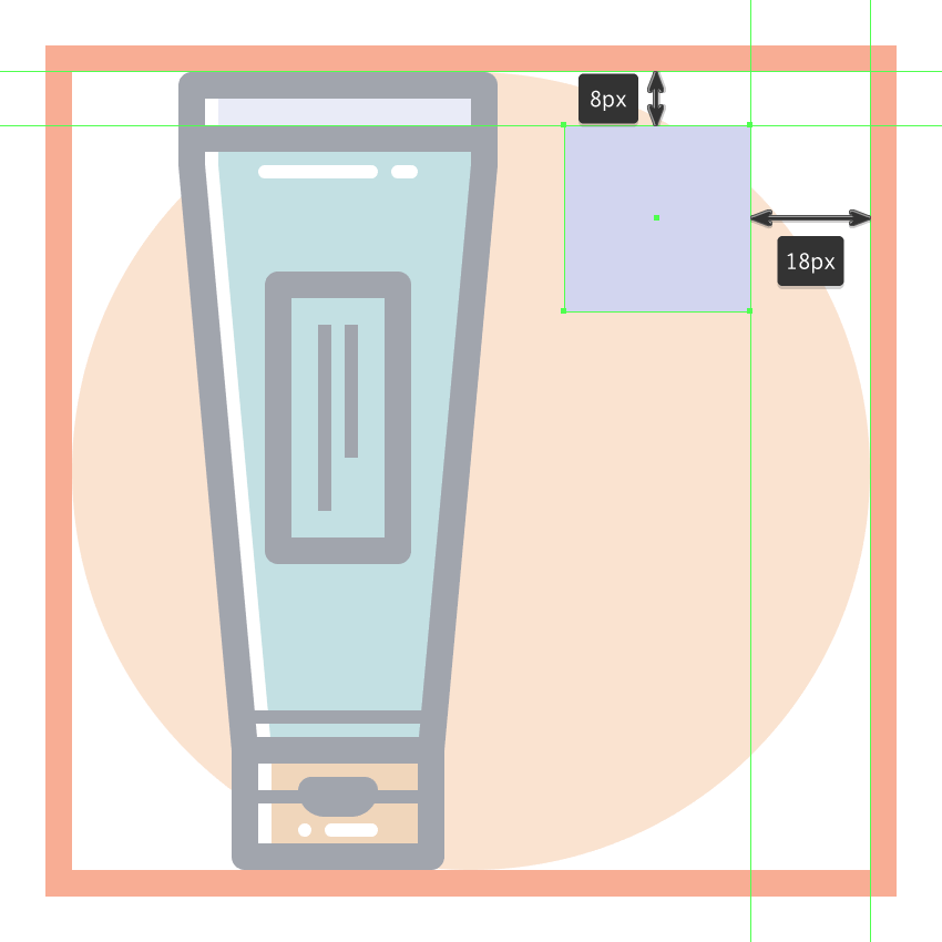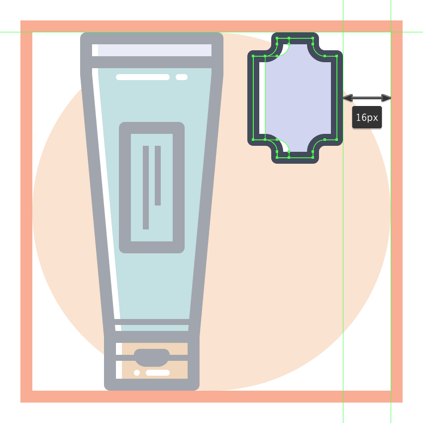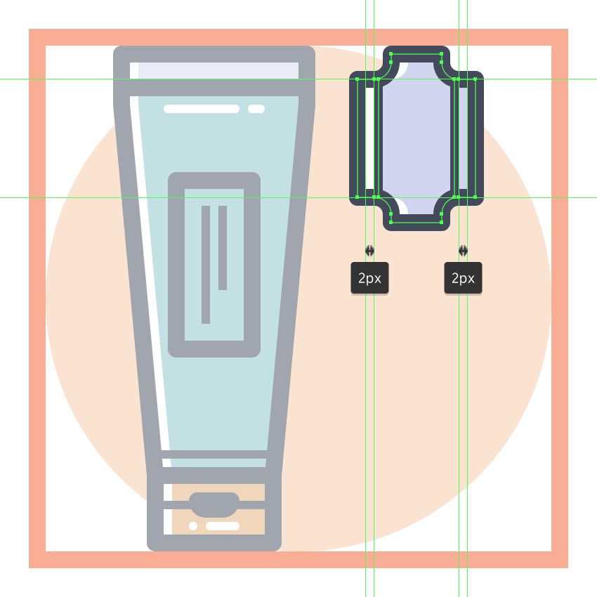 使用我们将使用的36 x 88 px椭圆创建设备的底部主体#E28D76,然后将其放置在距活动绘图区域右边缘16 px距离,以及顶部边缘22 px处。
