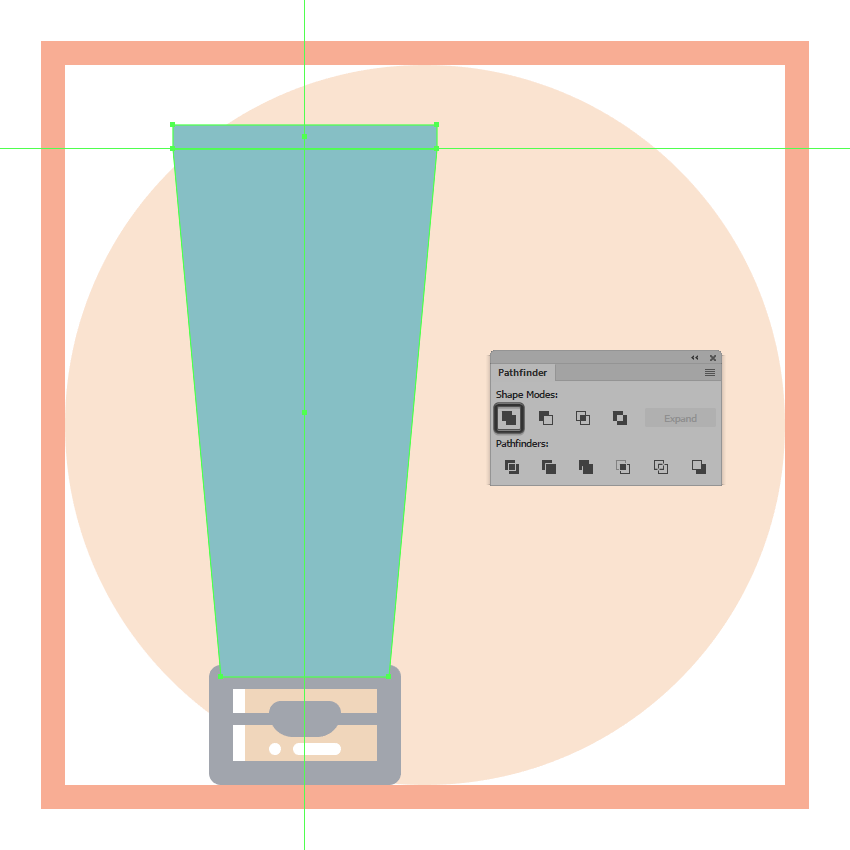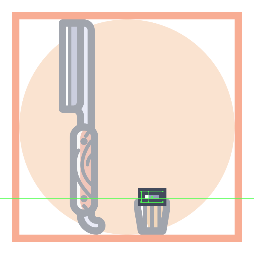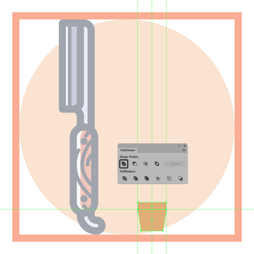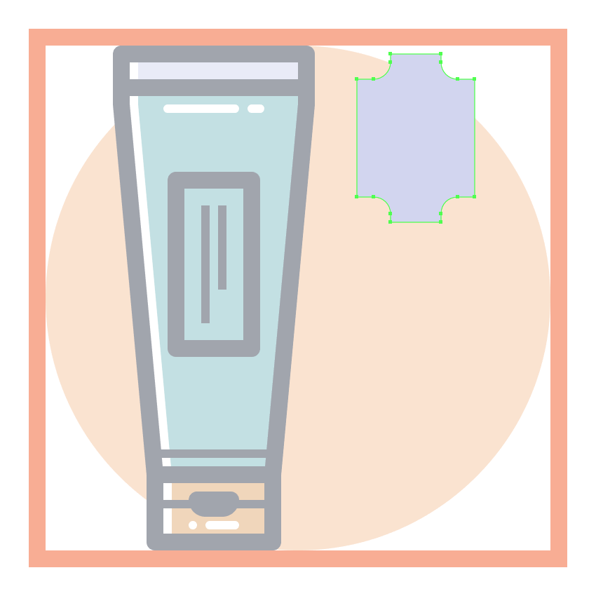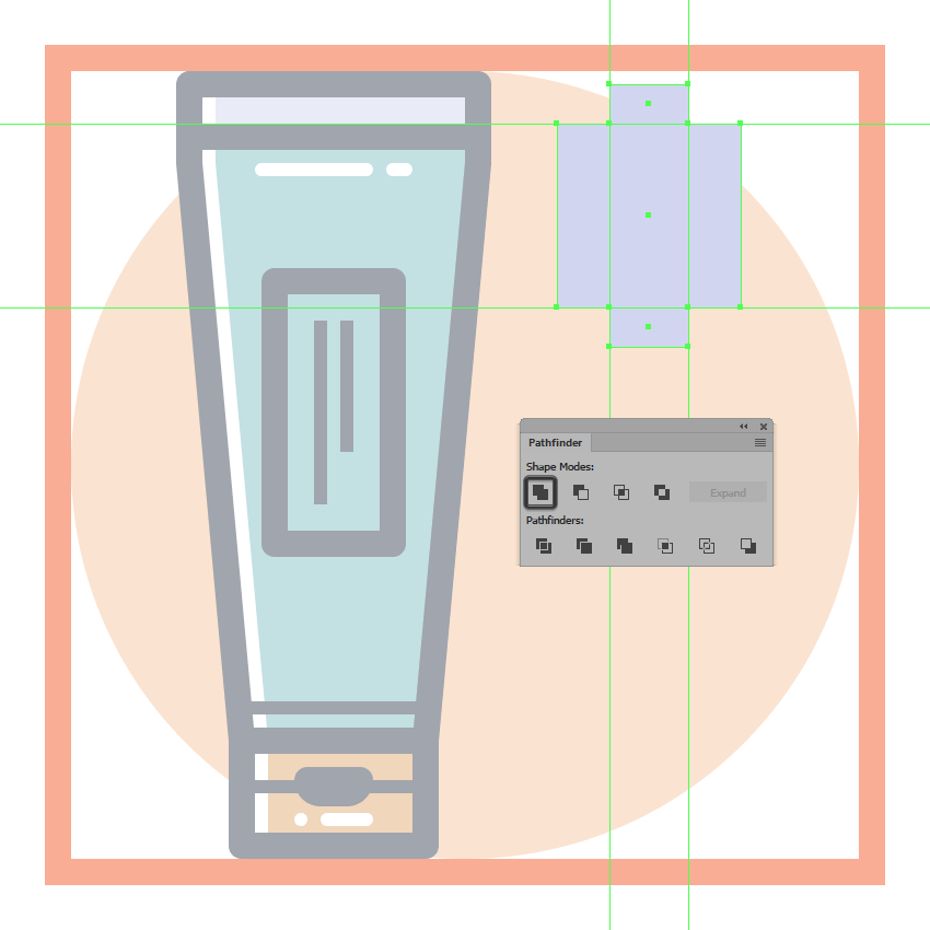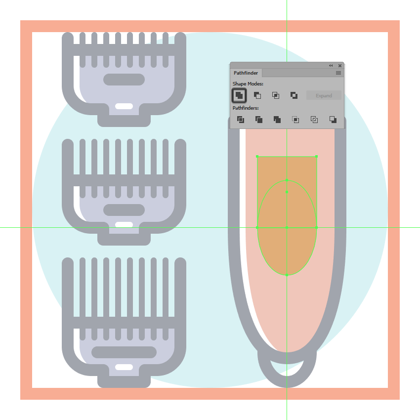 使用一个26 x 62 px的矩形(#E28D76)创建梳子的上半身,我们将把它放在手柄的顶部,用探路者的Unite Shape模式将它们合并成一个更大的形状。