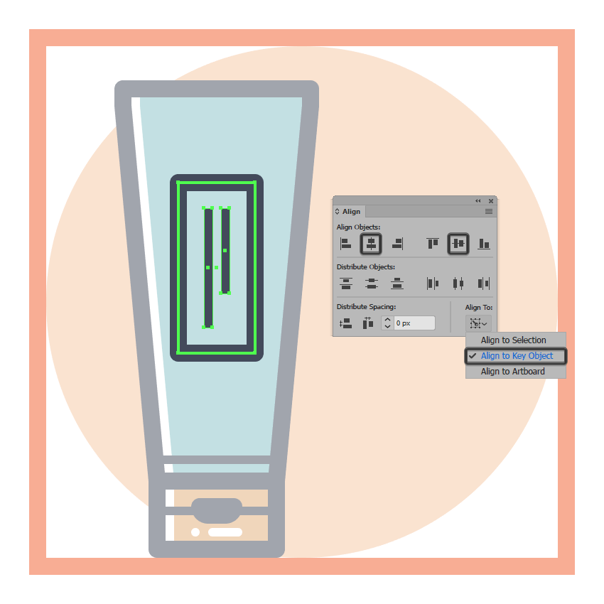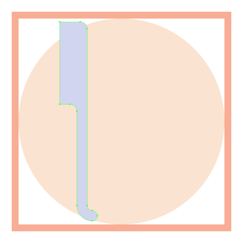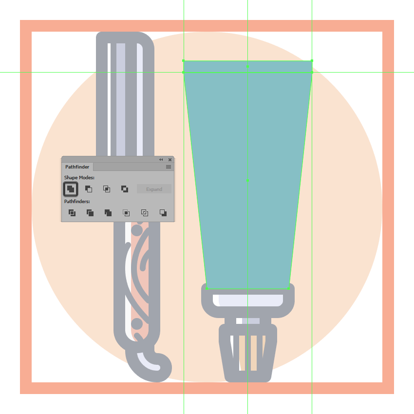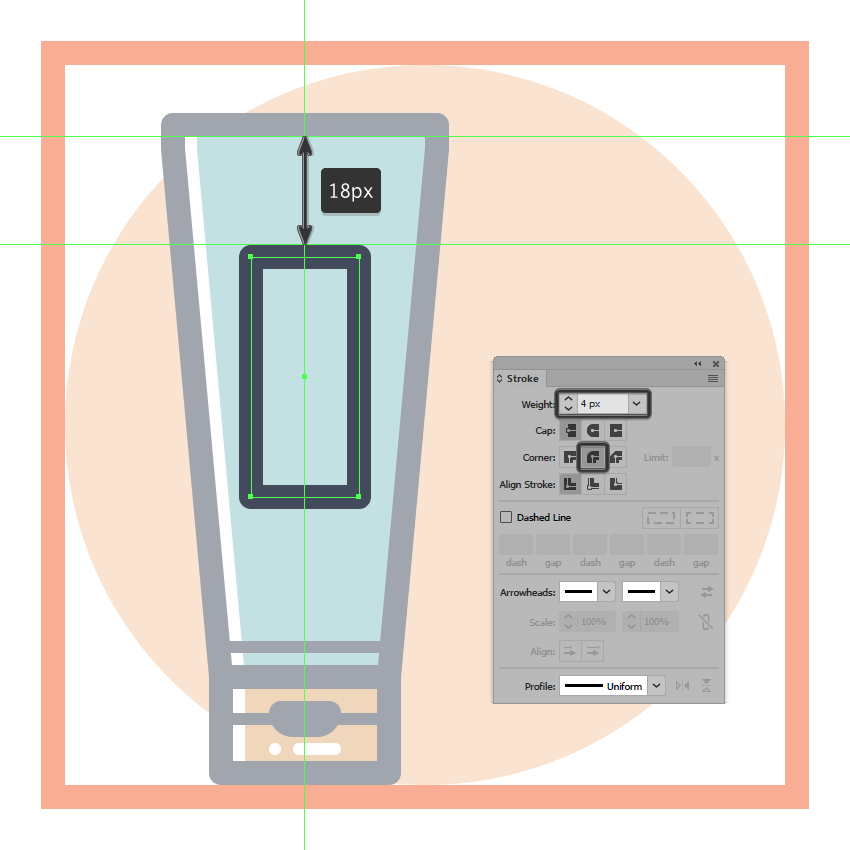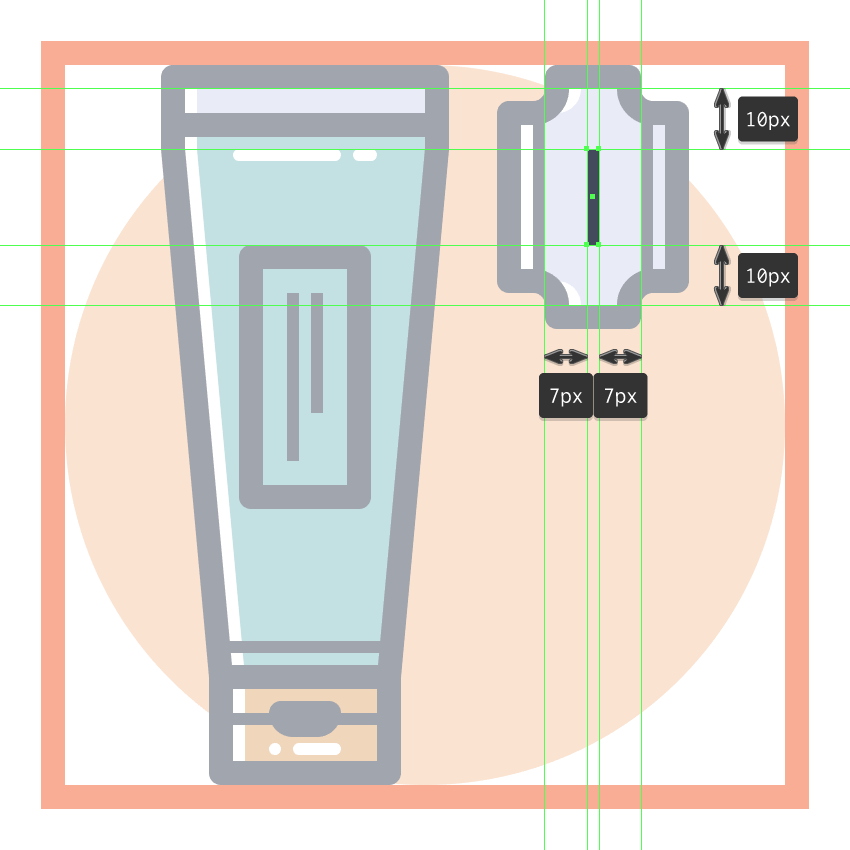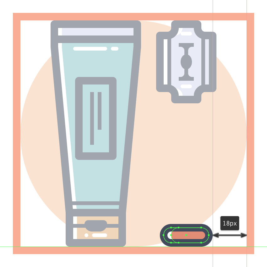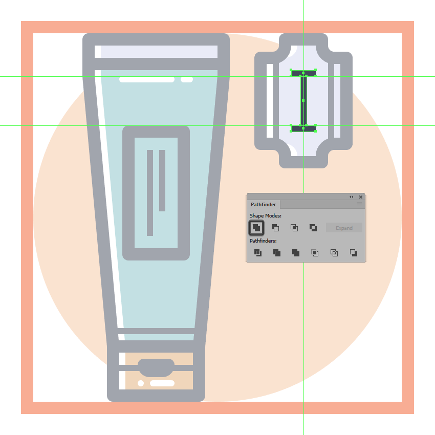 通过使用Pathfinder的减号正面形状模式从上半身切出一个16 x 50 px矩形(用红色突出显示)来调整所得形状。