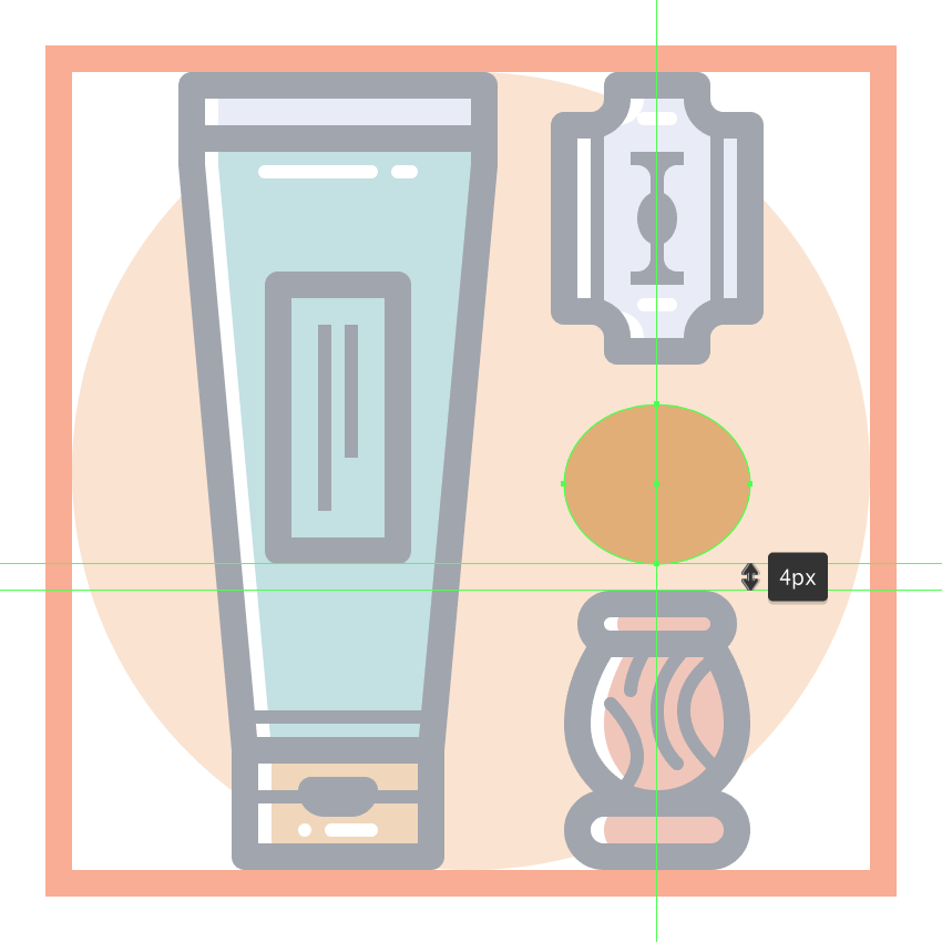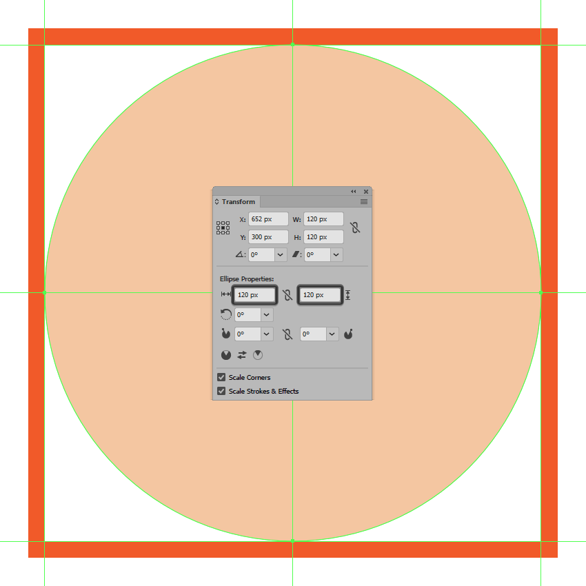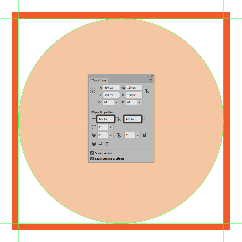 首先使用120 x 120像素的圆圈创建背景,我们将使用该圆圈进行着色#F4C7A2 ,然后居中对齐到第二个有效绘图区域。