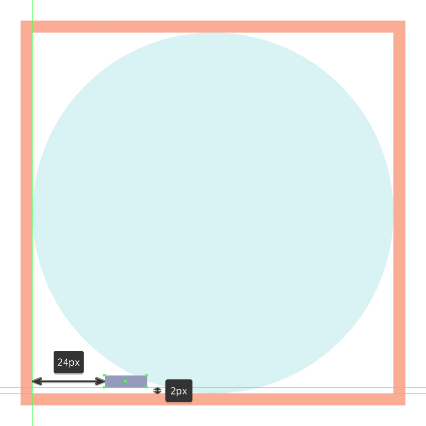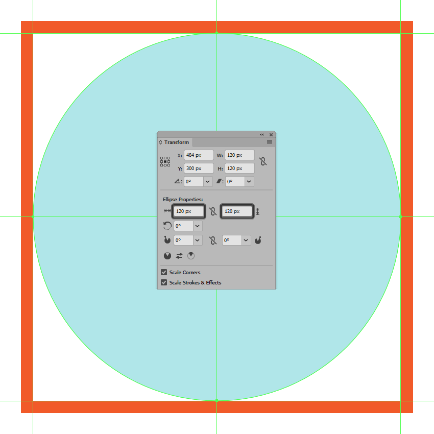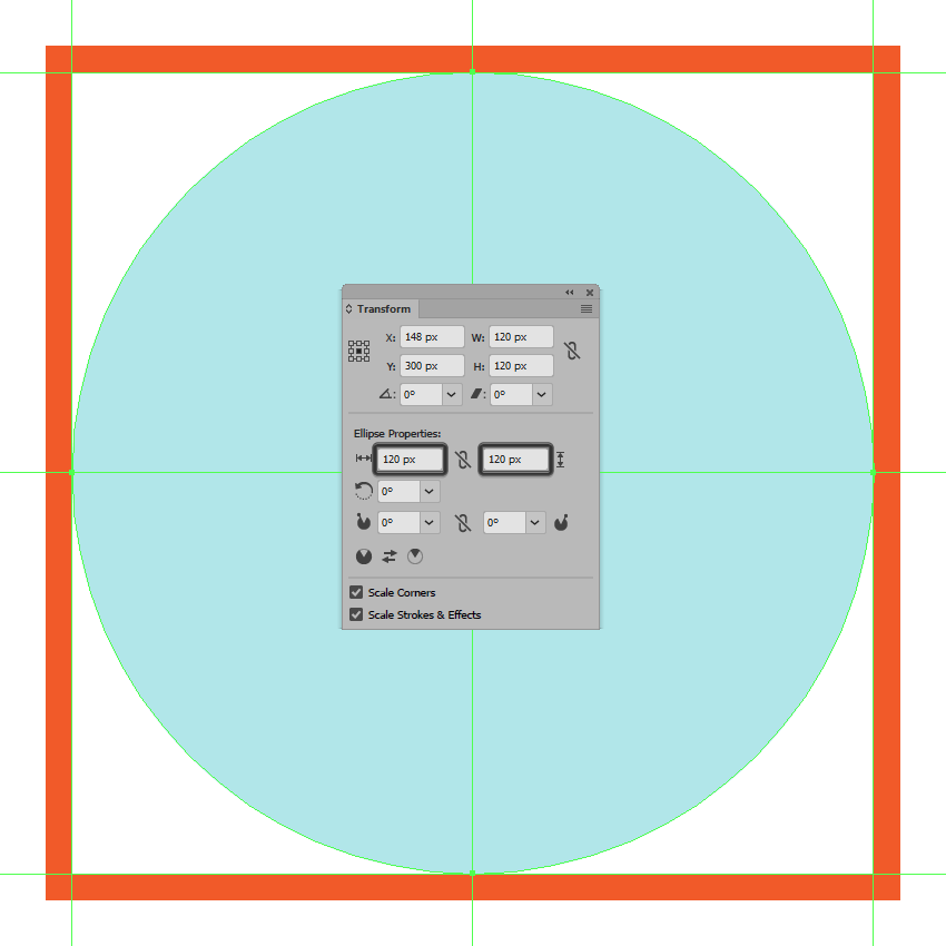 使用120 x 120像素圆圈创建背景,我们将使用这个圆圈进行着色#B2E7EA,然后居中对齐到参考图像中看到的第一个有效绘图区域。