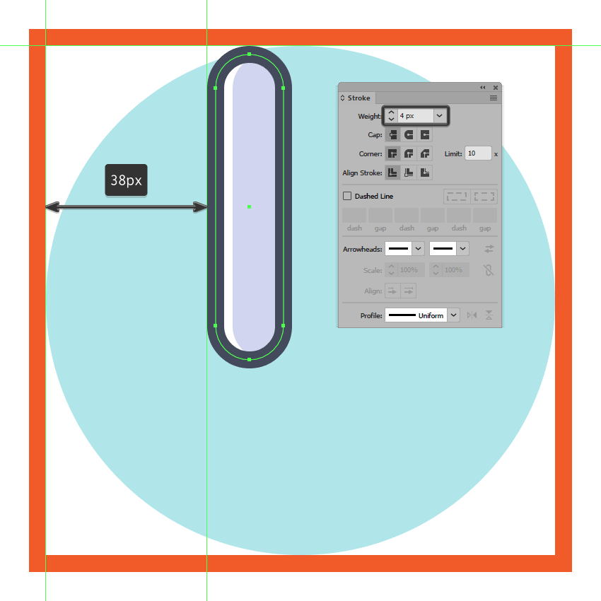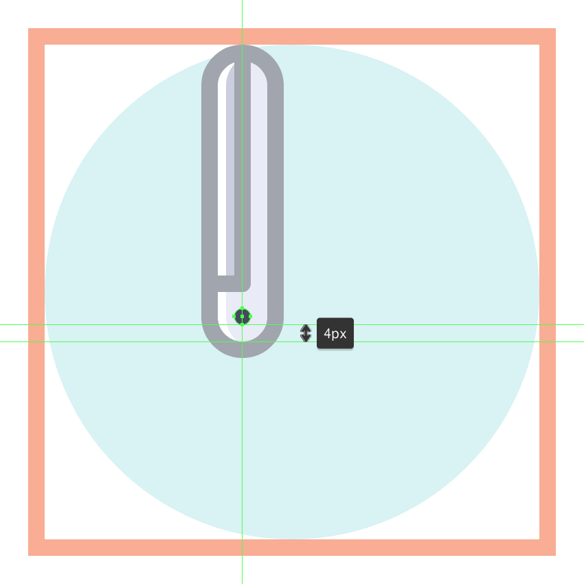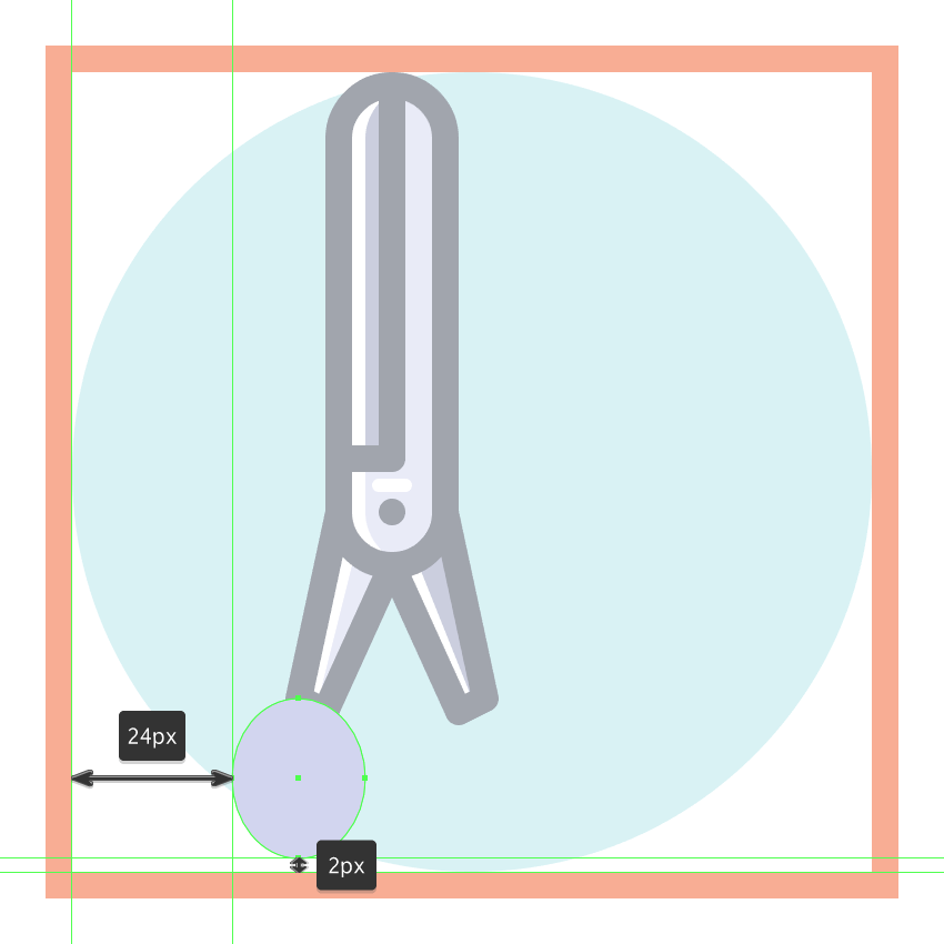 使用16 x 20 px椭圆和4 px厚Stroke(#41485B)创建小环部分,我们将对齐到活动绘图区域的底部边缘,将其定位在距其右边24 px的距离处开始制作裁剪器 一。