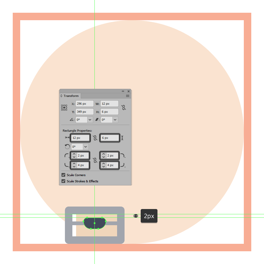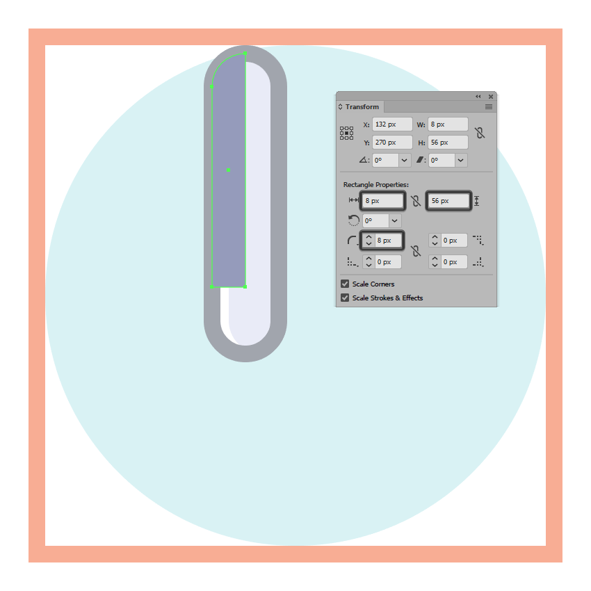 通过在“ 变形”面板的“ 矩形属性”中将 其左上角的“ 半径 ” 设置为8像素,调整刚刚创建的形状。