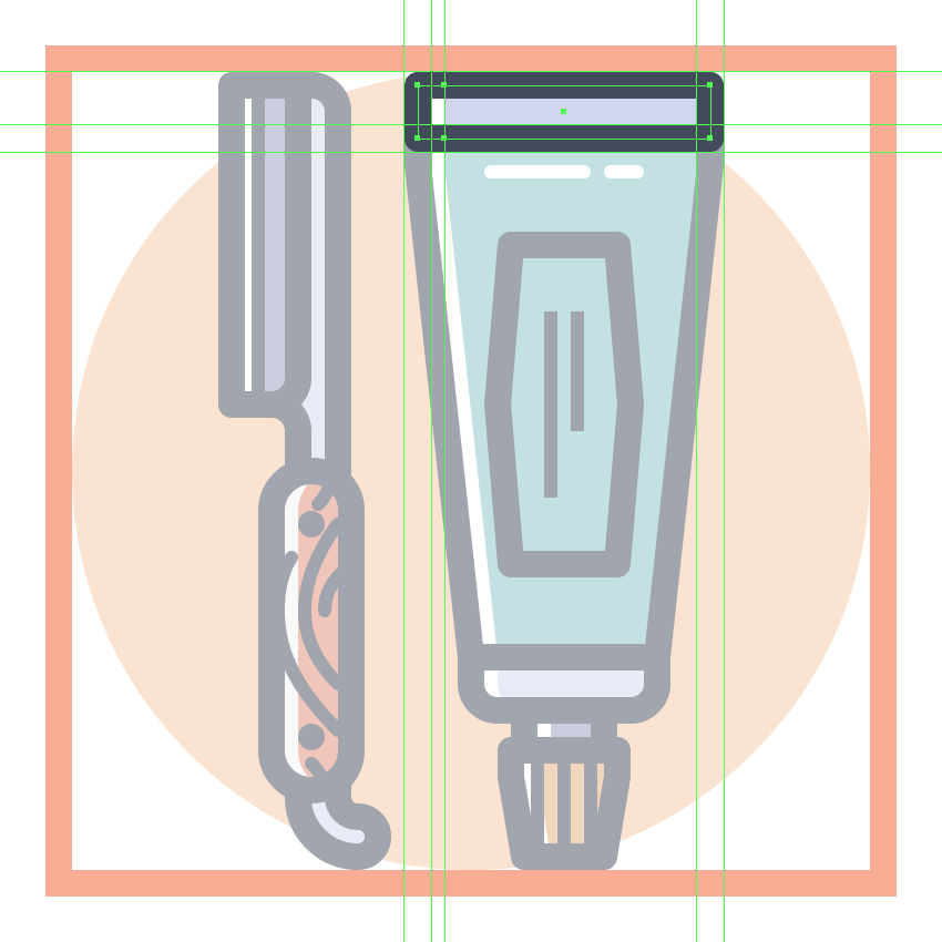 假设你已经完成了第一个图标的工作,锁定它的图层,然后继续下一个图层(这将是第三个图层),我们将开始研究第二套理发工具。