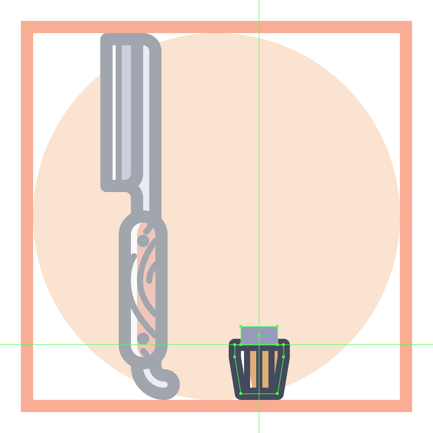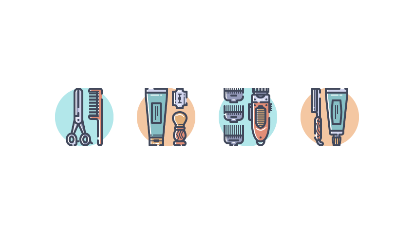 深入研究使用Ai中可以找到的最基本形状和工具创建一组理发师主题的工具和配件的过程。