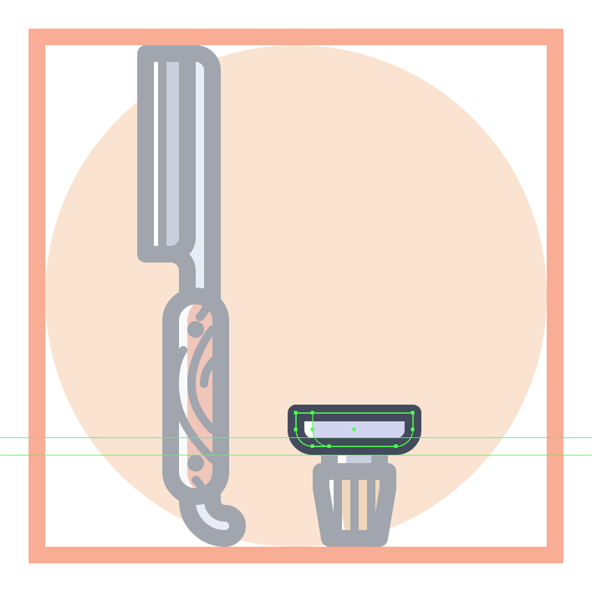 需要几个时刻和绘制使用五个木纹理2 PX厚中风线(#41485B)与圆帽,我们将然后组(控制-G )和掩码。完成后,选择并分组(Control-G)所有手柄的组成形状,在整个剃须刀上执行相同的操作,然后继续下一步。
