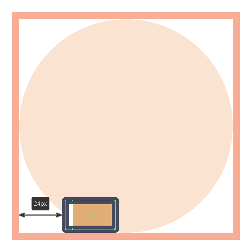 通过创建一个24 x 24像素的圆(#E28D76),开始在除尘器的主体上工作,我们将把它放置在前一部分的顶部,如参考图中所示。
