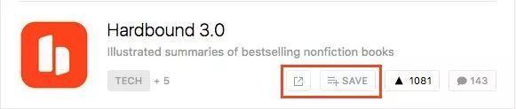 反例:Product Hunt。焦点落在「share」「save」控件上时,不显示任何hover触发的更多操作。