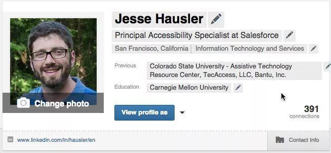 下面是Linkedin的一个例子。 以下是作者的个人资料页面中的屏幕截图。
