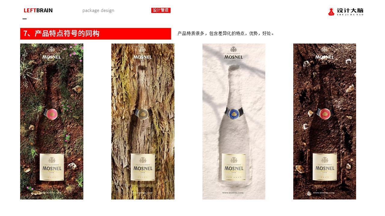 * 无论产品的定位是什么,主推的信息属于哪个层面,“是谁”是一定是要展现的,是必须存在的同构符号之一,要么是标志,要么是包装甁形,要么是辅助形态,来凸显品牌所属者。