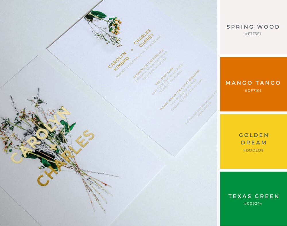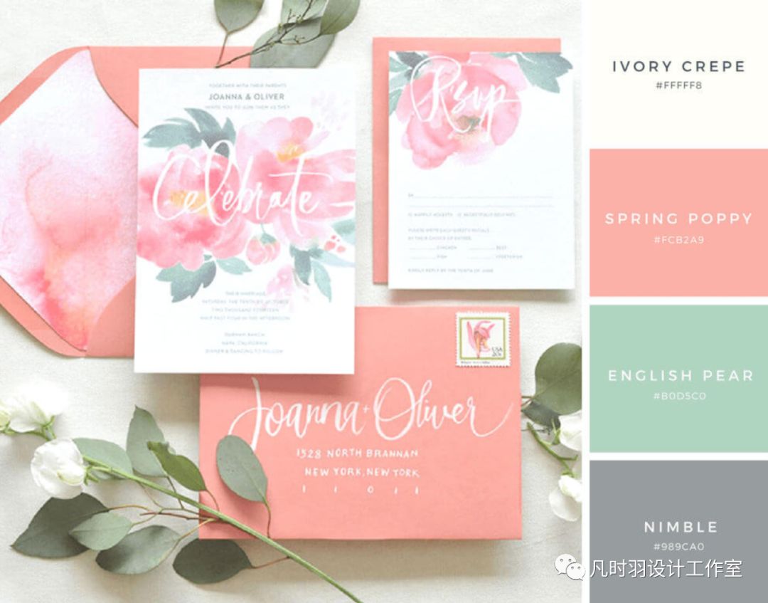 这次我们介绍以下一些婚礼请柬配色的组合 希望为你的婚礼平面设计激发灵感