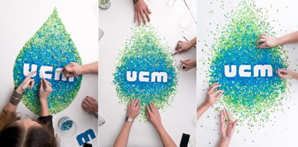 1、同心式发散 发散点从一点开始逐渐扩展,如同心圆渐变扩散所形成的重复形。这种构成,由于主要放散线,都集中在一起,格式变动有较大的局限性。所以,在应用时可以结合其他形式,使画面效果更加丰富。例如在下面广告设计作品中,不仅采用了同心式发散构成,还结合了不同间距、不同大小的色块进行对比,使画面更加具有变化性。