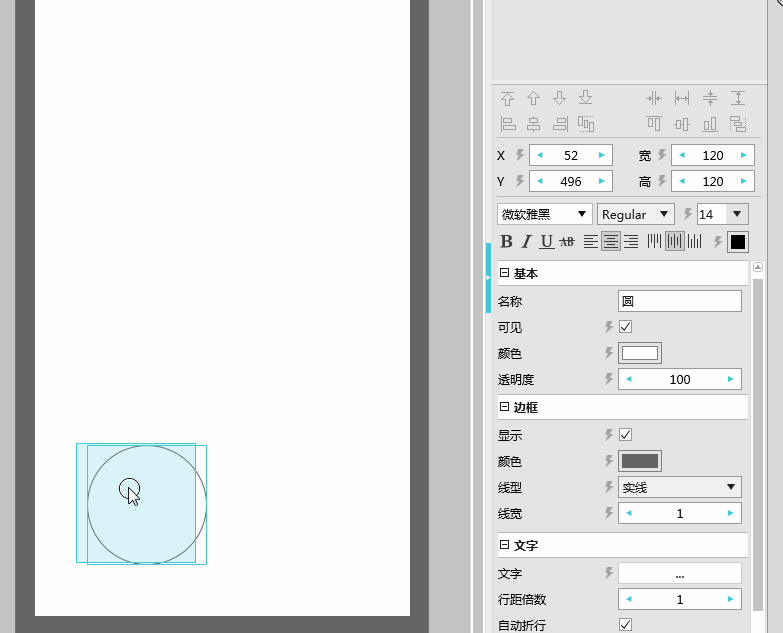 1)拖出圆形组件,对其设置文本、背景色及去掉边框。