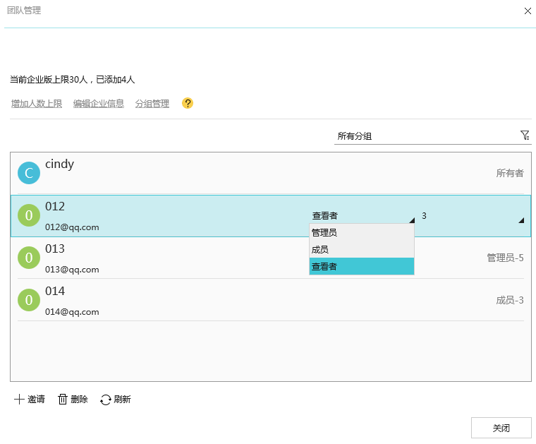 团队协作及管理:支持多成员协作完成一个项目。对团队成员进行添加或删除,对成员设置不同角色,对项目设置查看、编辑权限等。大大的方便了企业对团队的管理和协作设计。