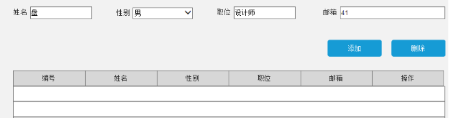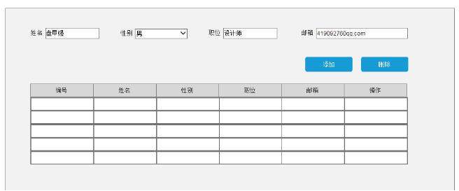 从元件库分别拖入输入框(文本框、下拉列表框)、按钮、表格。设计出页面的三个区域:输入区、动作区、显示区。对每个元件命好名。