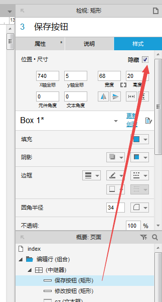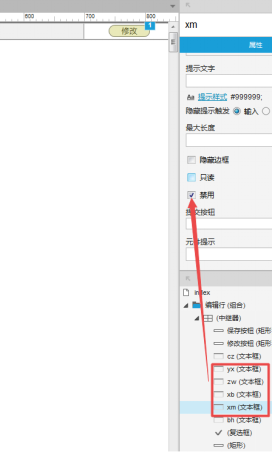 首先让文本框处于禁用状态。在中继器中新增一个“修改”按钮和一个“保存”按钮,让“保存”按钮先