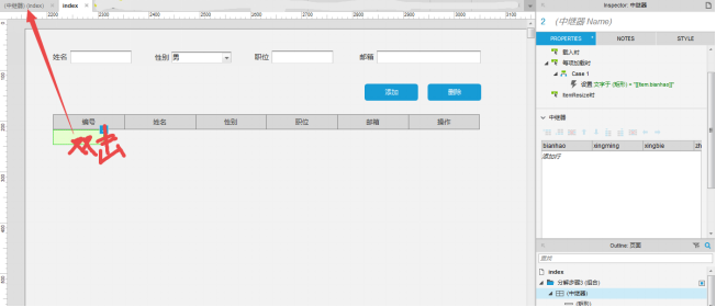 在设计稿中双击中继器,切换到对中继器的内部编辑。