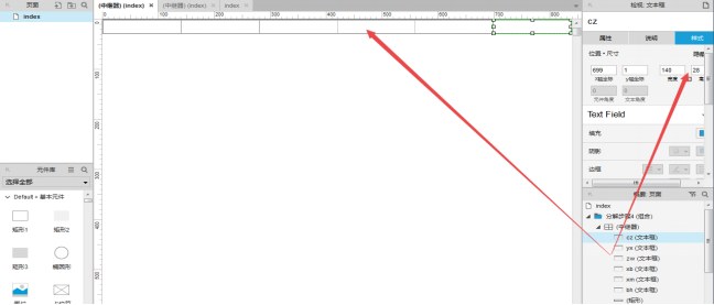 从元件区拖入6个文本框,每个文本框的宽度与所在列的宽度一致。对应的命好名。