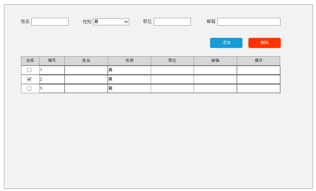 ★思路: 勾选某行后点击删除按钮,此行被删除。