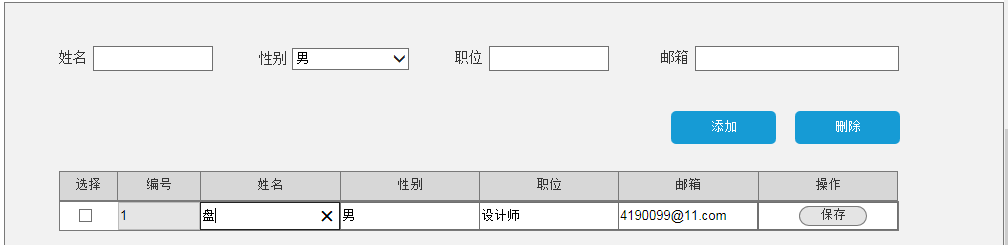 ★思路: 通过一个“修改”按钮让此行处于可编辑状态,编辑完后通过一个“保存”按钮将此行信息保存。