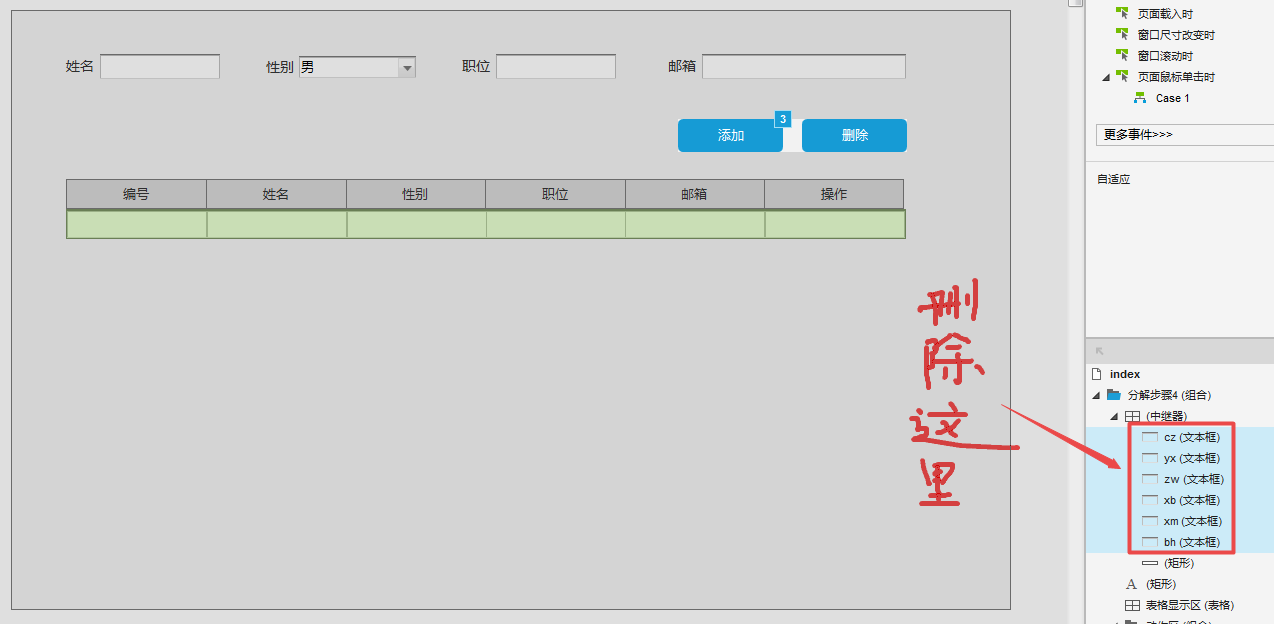 ★思路 :当点击“添加”按钮时,中继器增加一行。