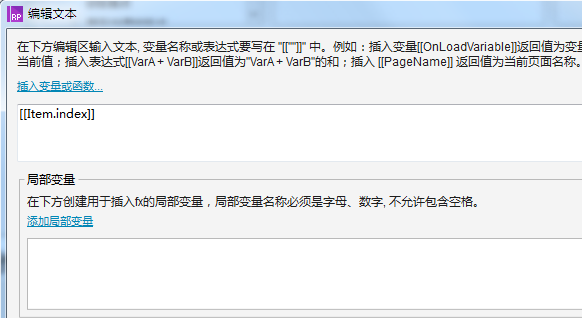值得注意的是:为了实现编号一栏实现自增长,在编辑文本弹框里,编号一栏选择index。局部变量可以不用设置。操作栏先别设置。