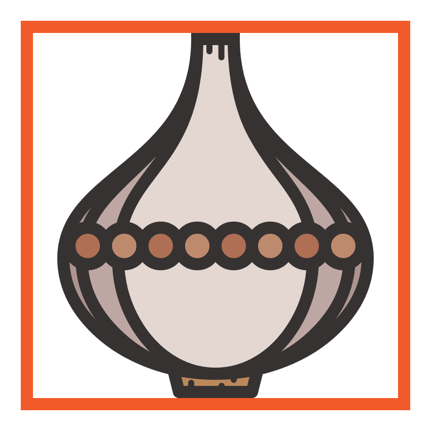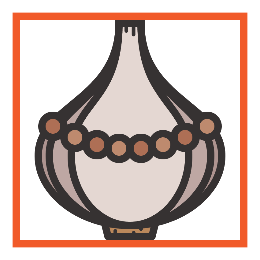 创建大蒜的正面部分,这次只使用更小的64 x 76 px 椭圆(#E5D8D3)作为底部的相同过程。给出最终形状为4 px厚的轮廓(#332E2E),然后分组(Control-G),并将两个形状定位到其他部分上,并将它们对齐。