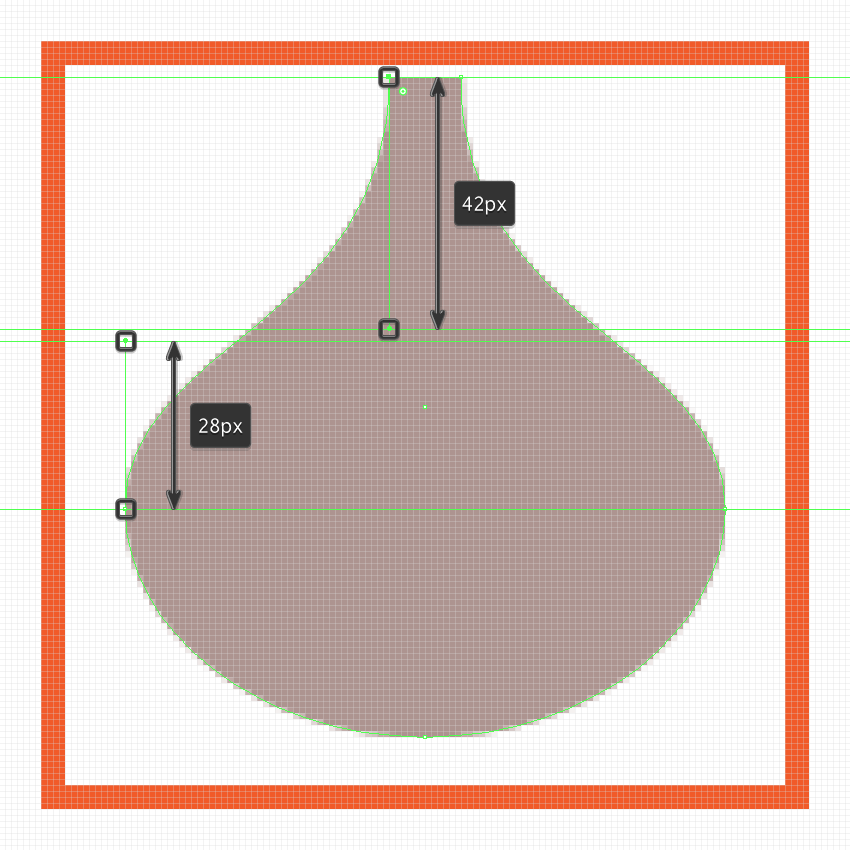 要做到这一点,最好的方法是打开 Pixel Preview模式(Alt-Control-Y),然后拖动并定位手柄的末端,顶部锚点为42像素,底部为28像素。