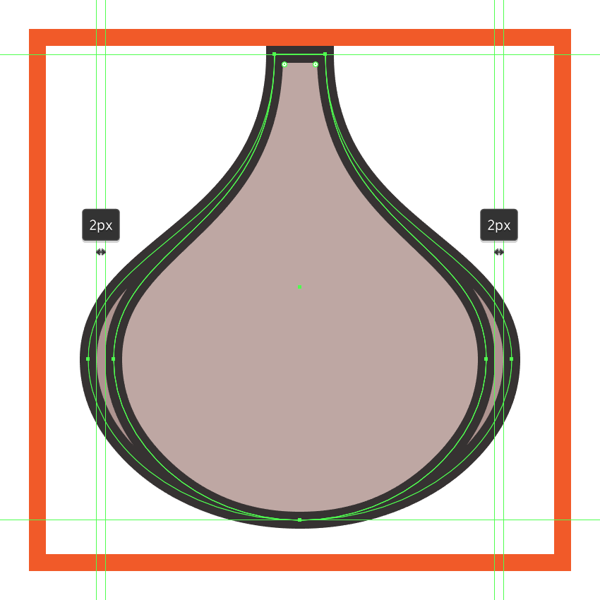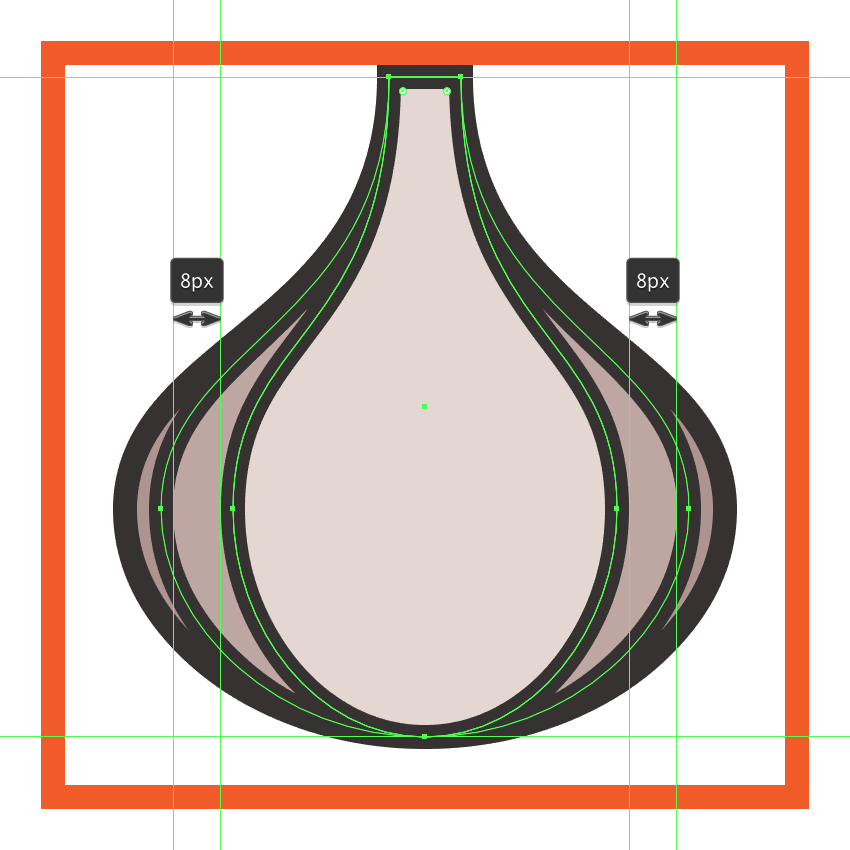 使用相同的过程创建大蒜的中心部分,只有这次使用较小的88 x 76 px椭圆作为底部,使用所得的形状进行着色#BFA9A5,并将它和它的轮廓()一起分组(Control-G)#332E2E。