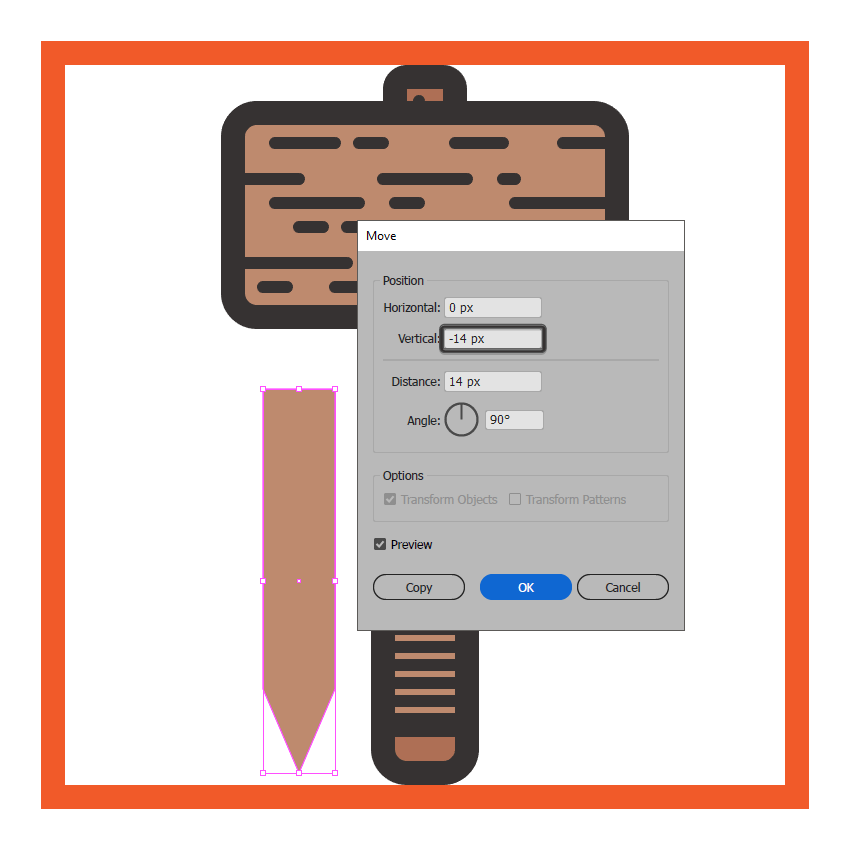 通过 在其下边缘的中心添加一个新的锚点来调整形状,然后通过14 px(右键单击>变换>移动>垂直> -14 px)选择并向上移动它的顶点。