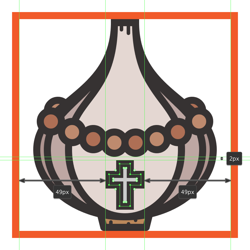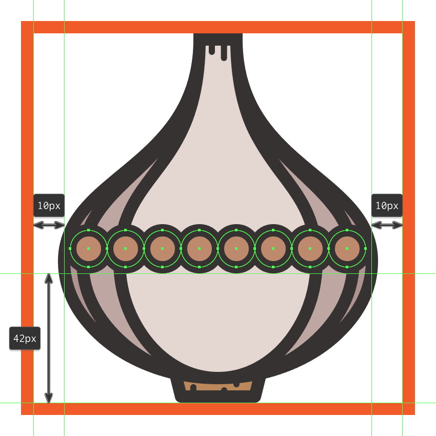 由于我们想给人的印象是念珠一直延伸到大蒜的周围,我们需要在它的身体后部增加两个珠子,将它们稍微推向顶部,确保颜色保持一致与其余的元素。