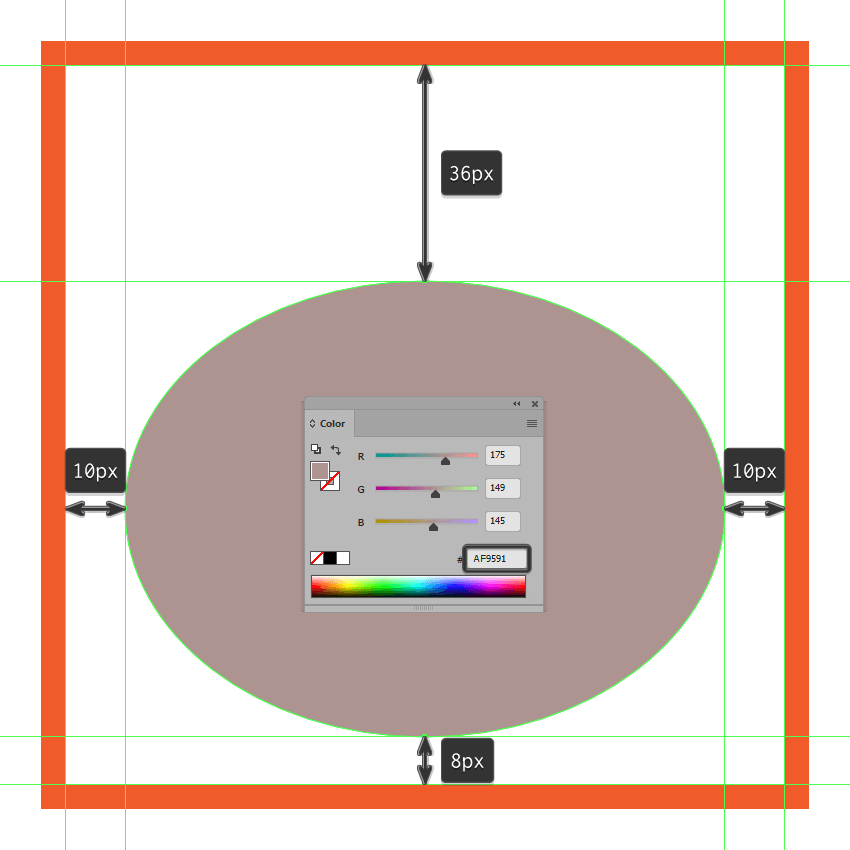 使用一个100 x 76 px的椭圆创建大蒜身体的主要形状,我们将使用该椭圆进行着色#AF9591,然后将其放置在底层活动绘制区域的中心,距离其底边8 px。