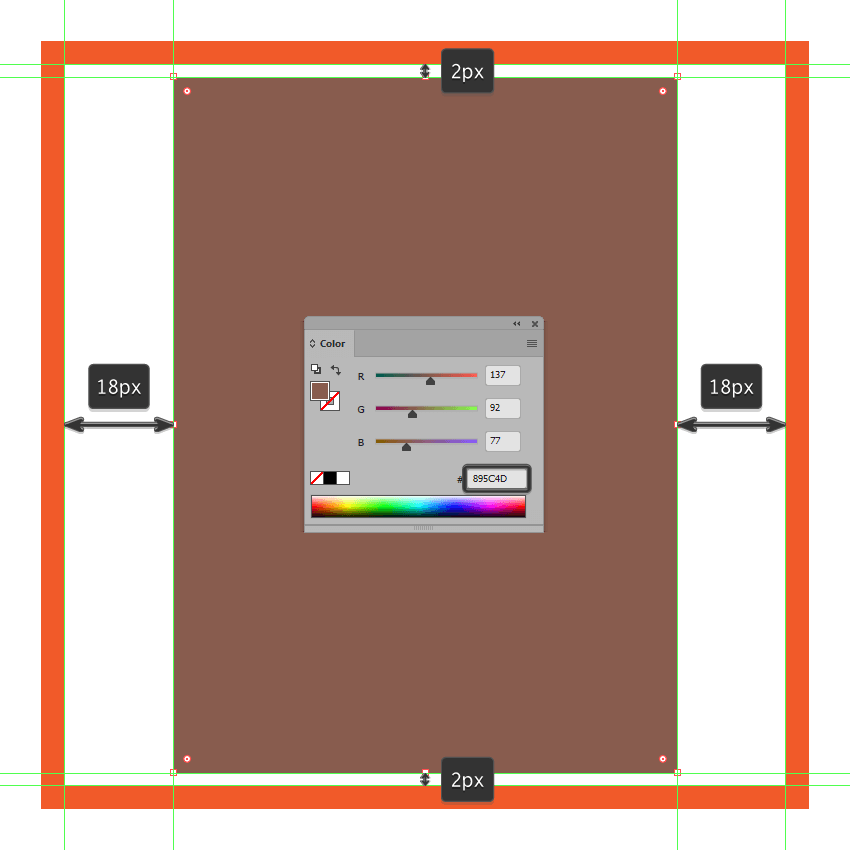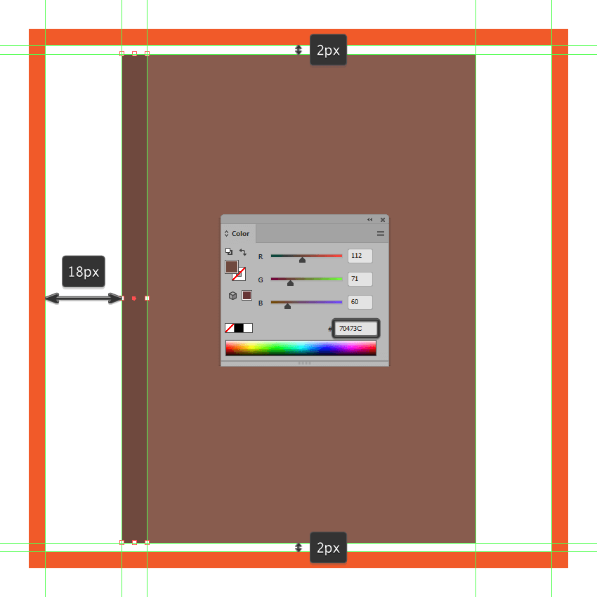 创建一个更小的50 x 88 px 矩形,我们将使用该颜色#70473C ,然后对齐到我们在上一步中创建的装饰线的中心。