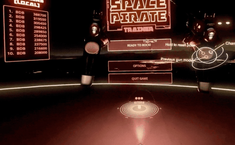 上方第一张图是Space Pirate Trainer,用户用点选的方式来操作菜单。第二张图为Arizona Sunshine游戏,玩家要在游戏中抓起虚拟的游戏卡带,插到游戏机里进入街机游戏模式。点选方式是鼠标键盘时代的产物,很明显SPACE pirate trainer用虚拟卡带进入游戏模式的交互方式,要远远优于ARIZONA SUNSHINE,不仅有着沉浸式的体验而且很有怀旧风格。