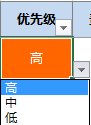 (四)下拉序列自动匹配颜色,如优先级,选择下拉选项后,高优先级自动变为亮橙色,中为黄色,低为蓝色。此处用到的是【条件格式】。