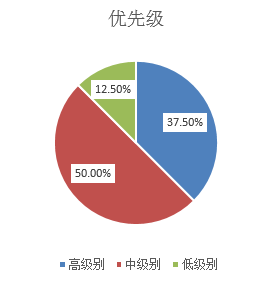到此,关键用到的函数已经讲完,有了汇总的问题点特征的数据,可以灵活的使用图表做可视化统计,例如优先级不同级别的比例。如图11