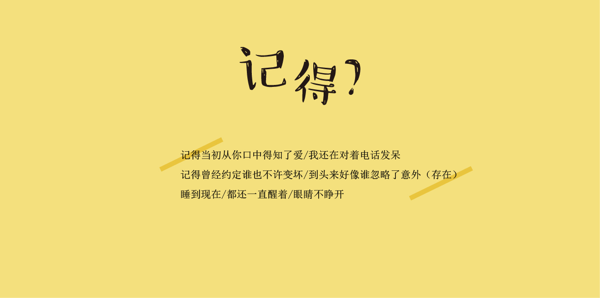 【短评】记得这首歌,在做字体设计的时候,刚好是看到白茶大神的吾皇万睡系列,知道了大神用的是小麦体,刚好乘着这个词组有个问号,就想着可以一用,然后排版的错落一点,跟歌词的内容也算契合,都是走俏皮的风格。