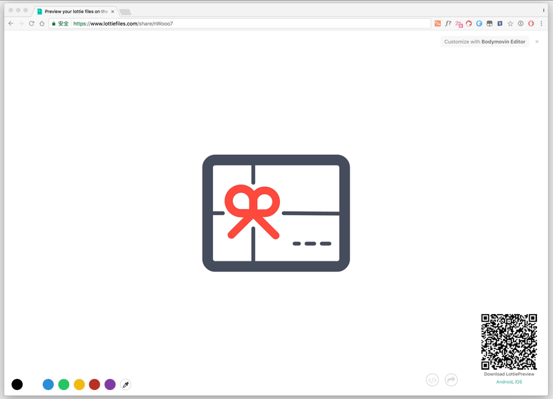 之后用你的手机,扫描右边的二维码进行预览(商店搜索Lottie Preview,分别用Android和iOS进行测试),如果动画有问题,继续回去看看AE用了什么不支持的属性,然后调整输出,重新导出,再次检测.
