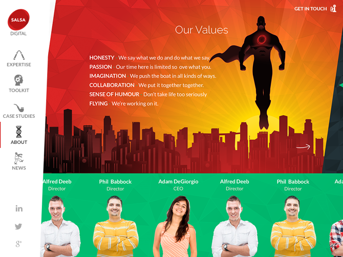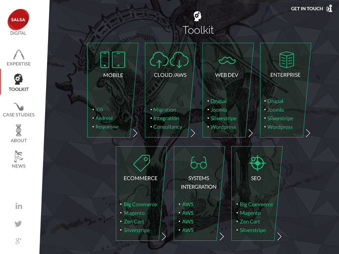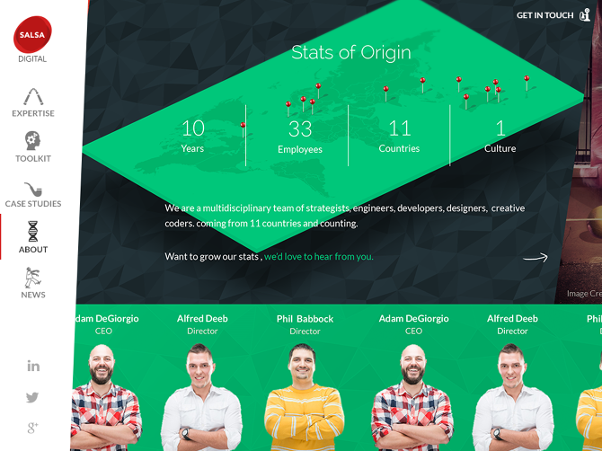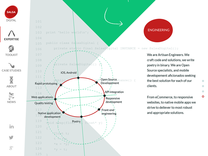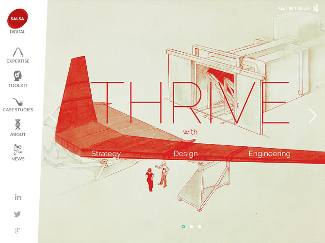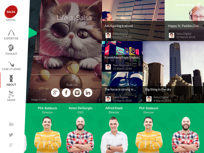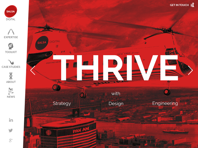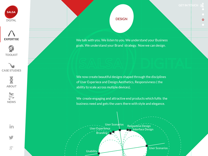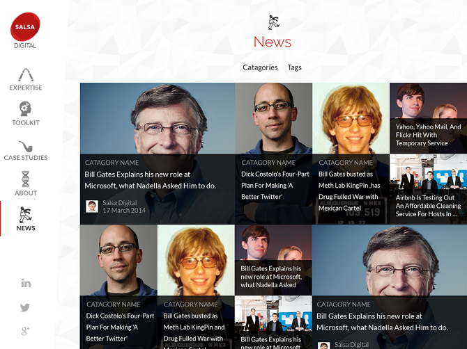 灵活的网格,不单单只是矩形,根据图片实际使用情况,而设置出一种新式表格。这个作品是典型的灵活运用网格系统的代表。