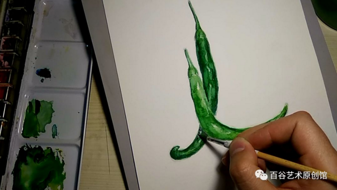 辣椒,大家在生活中常吃常见,本期课程绘制了两个青辣椒,方法很简单,下面给大家讲解一下具体的绘制方法↓