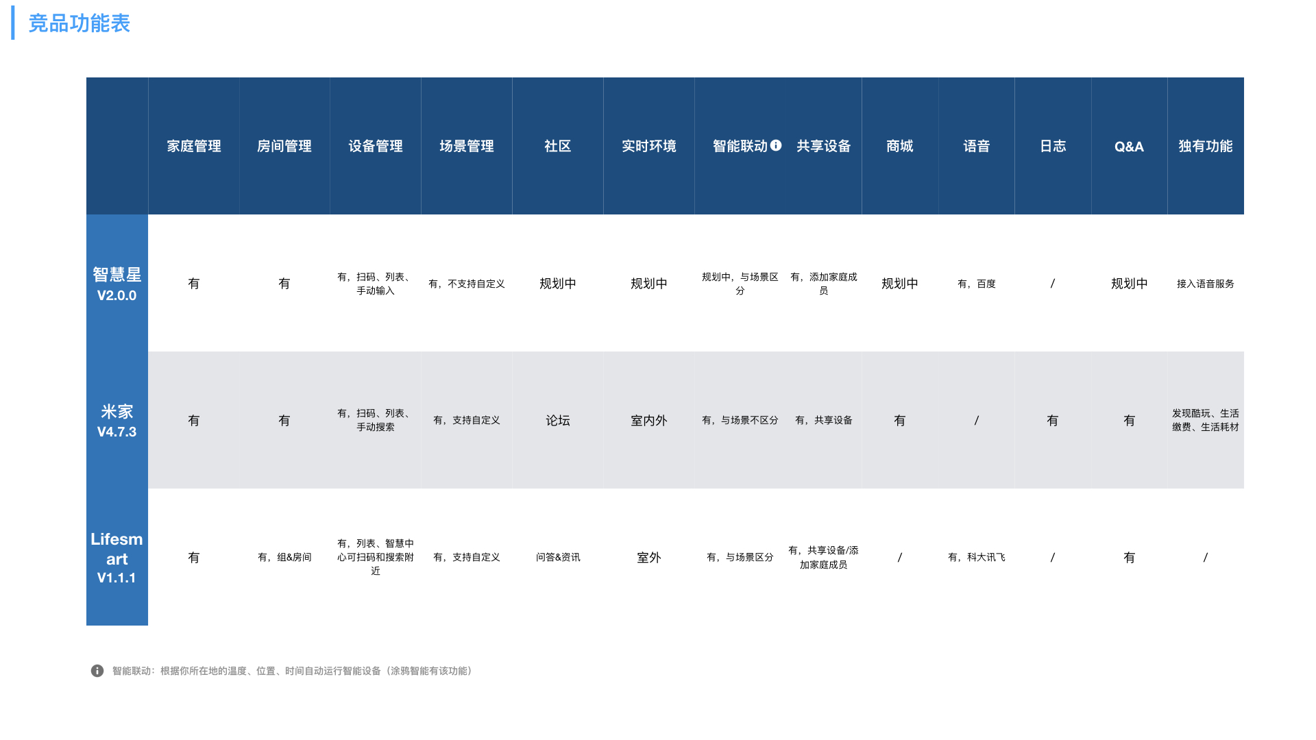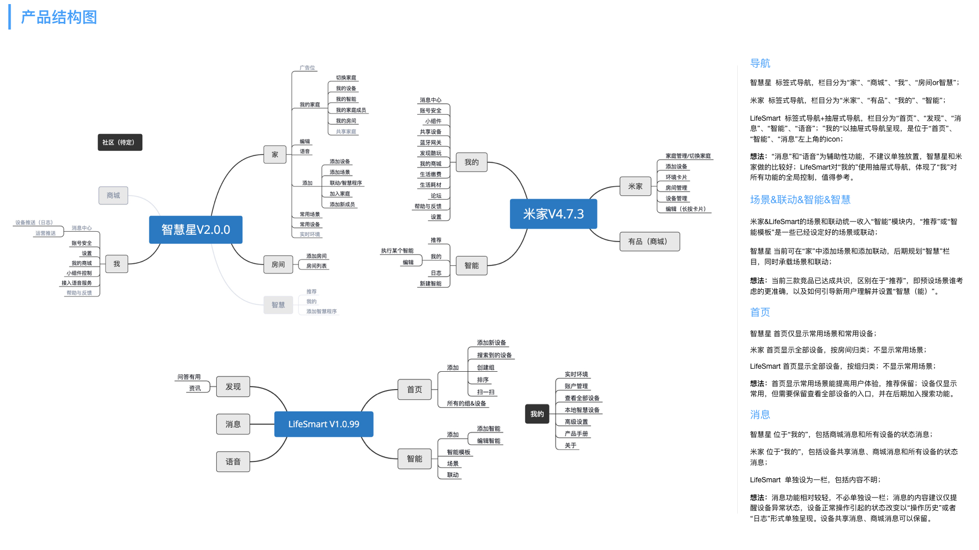 这一步跟产品竞品分析不同,列举功能的差异不是为了考虑今后要不要做这个功能(这主要由产品经理考虑),而是为了给第四步的产品结构图打基础。