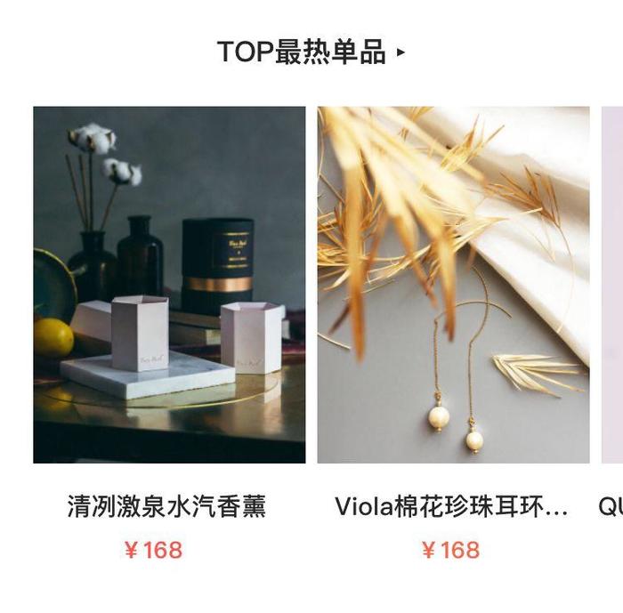 再接着是用户会比较感兴趣的,Top最热单品版块,以及4个专题版块,主题可以变换。为了节约空间,让商品都变成可以横向左右滑动的。点击专题封面后,还可进入相应的专题详情。
