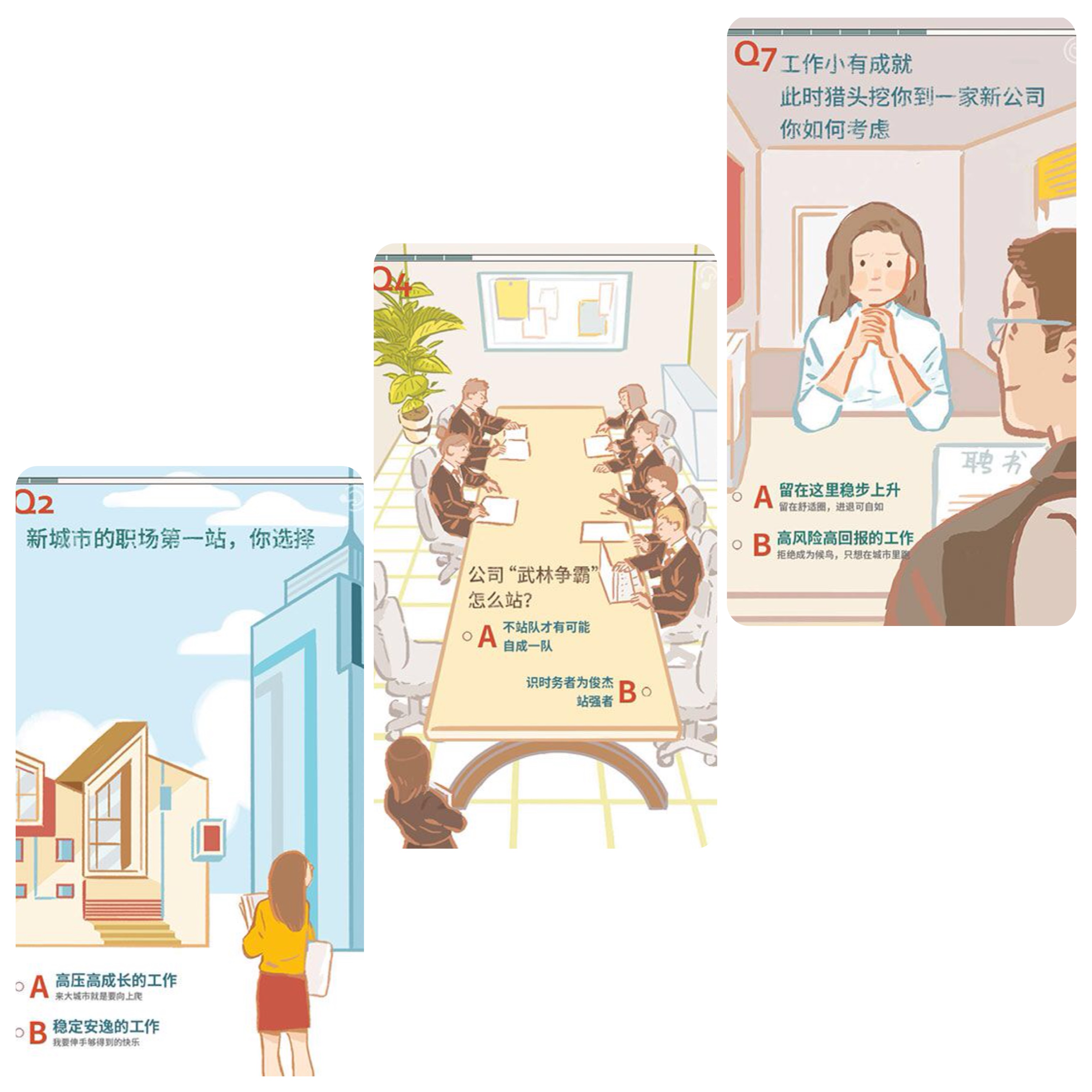 通过几道测试题,最后得出用户在大城市的战斗指数。将初入新城市所经历的一切都考虑入内,引起异乡漂泊人的共鸣。