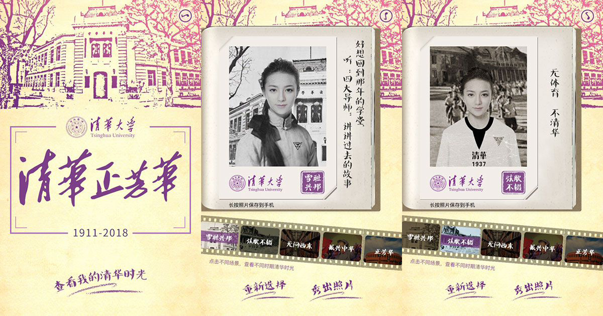 采用上传照片的形式,生成用户的清华照片,生成照片的表现形式,也能通过年代加以选择,扩大了受众面积。