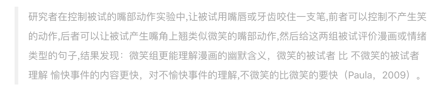 反过来控制面部肌肉的活动时也能诱发出相应的情绪。