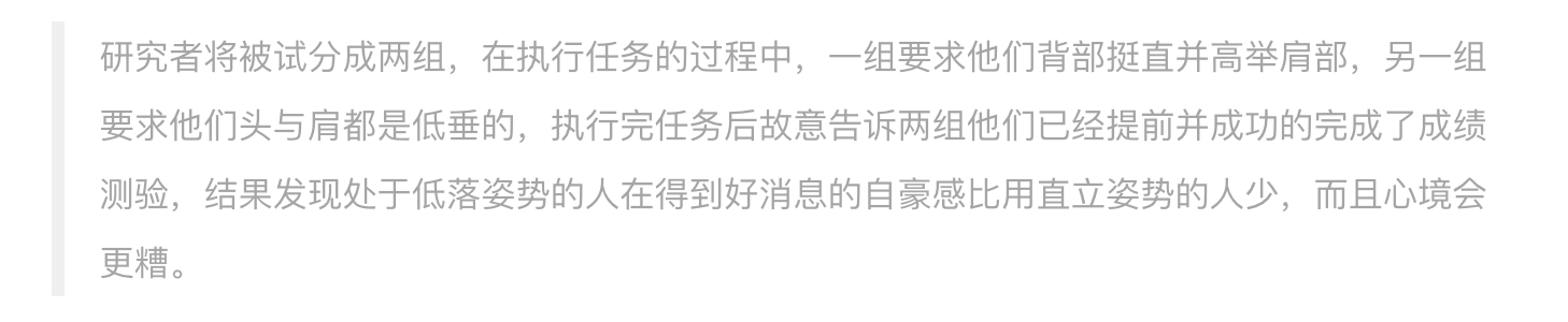 类似的研究还发现将拳头斜放于胸前并紧握时会让人感到发怒,垂头的时候会让人感到悲伤。