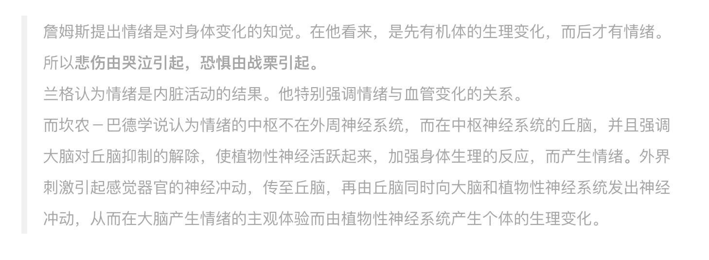 结论:因为内脏活动影响大脑神经,所以也间接影响了人的情绪。