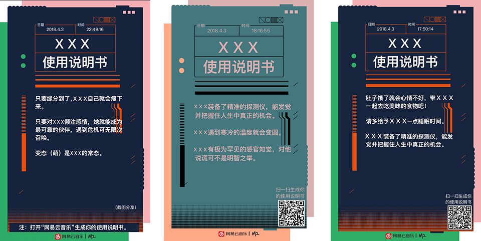 网易云音乐通过一份“使用说明书”又一次成功的抓住了公众视线,将话题热度推向制高点。结合说明书的新形式,上线就吸引了诸多目光。最终成了4月第一支现象级爆款作品。