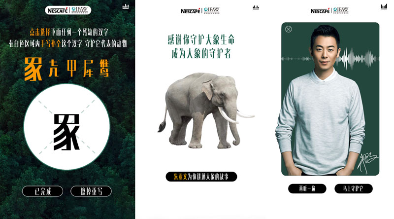 雀巢以此为题,携手朱亚文为动物发声,并采用填补汉字的方式,展现了动物们岌岌可危的生存状态,充满了新意。