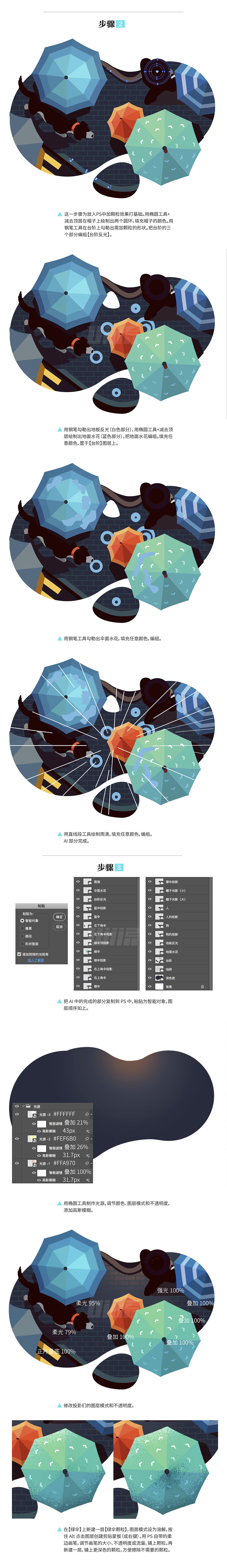 PS+AI教程!教你绘制极具质感的雨夜街道插画